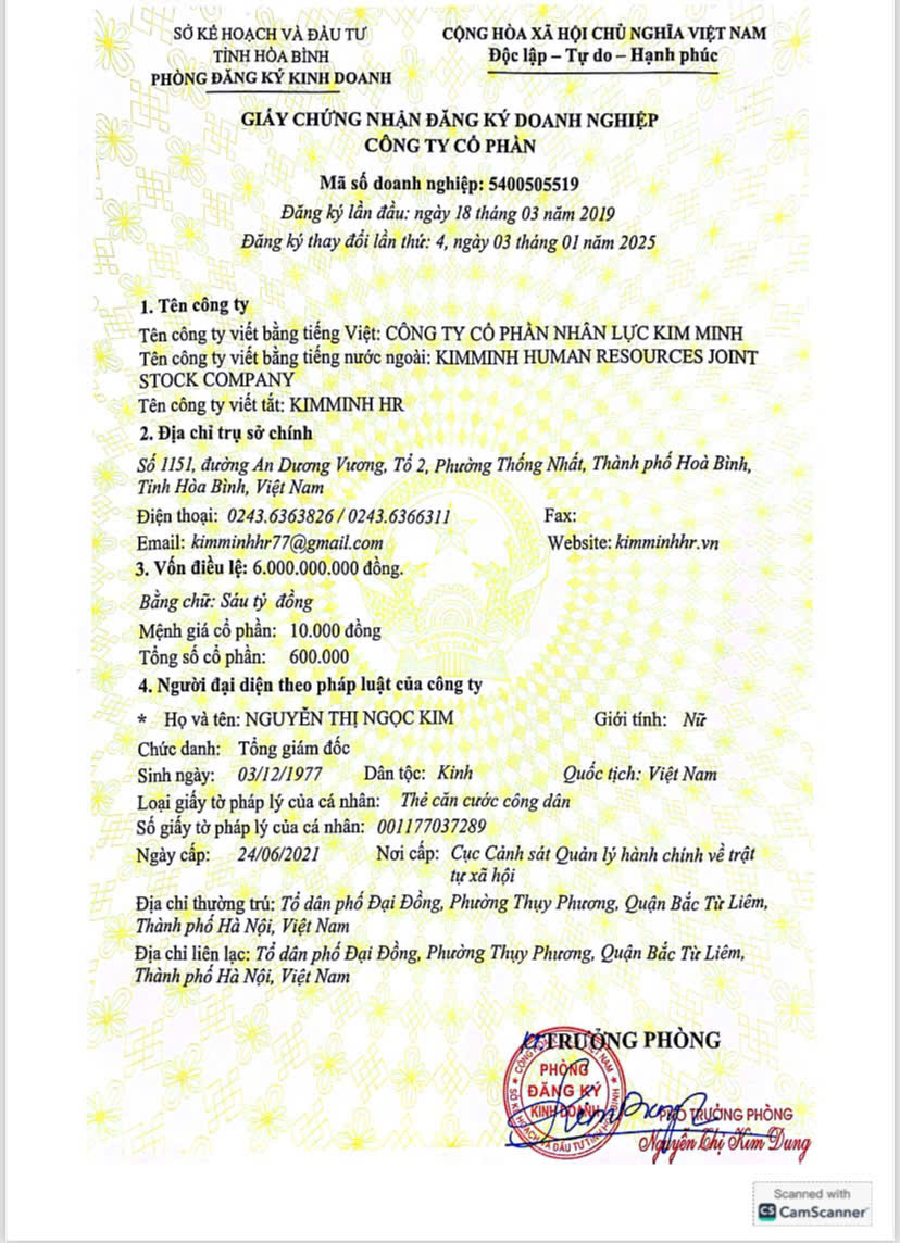 GIẤY ĐĂNG KÝ KINH DOANH CÔNG TYGiấy chứng nhận, GIẤY ĐĂNG KÝ KINH DOANH CÔNG TY CỔ PHẦN NHÂN LỰC KIM MINHChia sẻ: