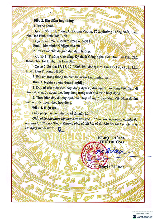 Giấy phép XKLĐ Công ty Kim Minh